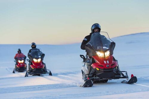 Rijd met uw eigen sneeuwscooter door een prachtig winterlandschap van de ene haven naar de andere, hopelijk onder het Noorderlicht!