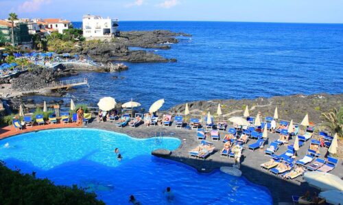 Op zoek naar een unieke vakantiebelevenis? Arathena Rocks Hotel, gelegen aan zee en vlak bij het charmante centrum van Giardini-Naxos, biedt een natuurlijk zoutwaterzwembad en directe toegang tot zowel zand- als rotsstranden. Ontspan in de Mediterrane stijl van het hotel en geniet van de zon op het terras.