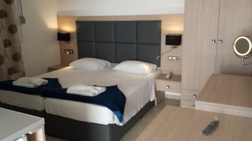 Zin in een zonovergoten vakantie met strand en zwembad binnen handbereik? Dan is Bright Star jouw perfecte match! Gelegen op slechts een steenworp afstand van het beroemde Faliraki-strand, biedt dit complex een oase van rust. Duik in een van de twee verfrissende buitenzwembaden of geniet van een drankje aan de zwembadbar. Bright Star belooft een onvergetelijke vakantie onder de Griekse zon.