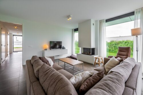 De sfeervolle woonkamer is heerlijk licht en door de glazen pui over de volle breedte van de living (floor to ceiling windows) kunt u genieten van het Zeeuwse licht. Door het openen van de tuindeuren verbindt u de woonkamer met het terras. In de living bevindt zich een comfortabele zithoek met sfeervolle gashaard en flatscreen TV. Een grote eettafel nodigt uit tot gezellig tafelen.
