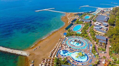 Zomer Wanneer je tussen 01-04-2026 en 04-11-2026 in deze accommodatie verblijft, is onderstaande informatie van toepassing. * Ligging * Privéstrand op circa 100 meter * Zandstrand * Kiezelstrand * Ligbedden met matrasjes * Parasol * Dichtstbijzijnde winkel op circa 500 meter * Dichtstbijzijnde restaurant op circa 500 meter * Dichtstbijzijnde bar op circa 500 meter * Konakli op circa 4 kilometer * Bushalte op circa 200 meter * Algemeen & faciliteiten * Kindvriendelijk complex * 7 gebouwen * Maximaal 5 verdiepingen * 470 kamers * Receptie * 24 uur per dag * Lobby met zitgedeelte * 6 liften * Lift in elk gebouw * Bagageruimte * Wifi in alle openbare ruimtes * Meerdere winkels * Minimarkt * Wasservice tegen betaling * Doktersservice tegen betaling * Tuin * Openbare parkeergelegenheid * Restaurants & bars * Buffetrestaurant * À-la-carterestaurant * 2 snackbars * Patisserie * 4 drinkgelegenheden * Bar * Beachbar * Discobar * Poolbar * Activiteiten & ontspanning * Aerobics * Basketbal * Beachvolleybal * Biljart tegen betaling * Darts * Fitness * Tafeltennis * Tennis * Voetbal * Watersporten tegen betaling * Spafaciliteiten * Sauna * Hamam * Massages tegen betaling * Gameroom toegang tegen betaling * Shows * Livemuziek * Zwembaden * 3 buitenzwembaden * Activiteitenbad * Adult pool * Bij één van deze zwembaden geldt een minimumleeftijd van 18 jaar * Eén van deze zwembaden heeft 7 glijbanen * Buitenzwembad voor kinderen * Zonneterras * Ligbedden met matrasjes * Parasol * Badhanddoekenservice * Kinderfaciliteiten * Mini club (4-12 jaar) * Kinderen tussen 4 en 12 jaar zijn welkom onder begeleiding van een volwassene * Minidisco * Buitenspeeltuin * Verzorging * Ultra All Inclusive * Ontbijt in buffetvorm (07.00-10.00 uur) * Laat ontbijt in buffetvorm (10.00-11.00 uur) * Lunch in buffetvorm (12.30-14.00 uur) * Diner in buffetvorm (19.00-21.00 uur) * Snacks (24 uur per dag) * Koffie, thee & koekjes (11.00-16.00 uur) * IJs (12.00-16.00 uur) * Selectie lokale (non-)alcoholische drankjes (24 uur per dag) * Tegen betaling: dineren in het à-la-carterestaurant, alle consumpties in één van de bars, drankjes in flessen, import drankjes, cocktails, turkse koffie en verse vruchtensappenHotelkamers * 2-persoonskamer Standaard DZ * Oppervlakte circa 24 m² * Airconditioning * Kluisje * Satelliettelevisie * Telefoon tegen betaling * Eet- en drinkfaciliteiten * Koffie- en theefaciliteiten * Minibar * Badkamer met douche, toilet en föhn * Wifi * Balkon (zitje) * 2-persoonskamer Large DL * Oppervlakte circa 34 m² * Airconditioning * Kluisje * Satelliettelevisie * Telefoon tegen betaling * Eet- en drinkfaciliteiten * Koffie- en theefaciliteiten * Minibar * Badkamer met douche, toilet en föhn * Wifi * Balkon (zitje) * Familiekamer Standaard FZ * Oppervlakte circa 43 m² * Woon-/slaapkamer * Slaapbank voor één persoon * Eén slaapkamer * Airconditioning * Kluisje * Satelliettelevisie * Telefoon tegen betaling * Eet- en drinkfaciliteiten * Koffie- en theefaciliteiten * Minibar * Badkamer met douche, toilet en föhn * Wifi * Balkon (zitje)