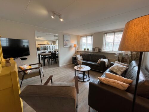 De volledig ingerichte open keuken biedt alles voor een gezamenlijk ontbijt, lunch en diner aan de grote eettafel. De aangrenzende woonkamer is voorzien van twee banken en twee stoelen om nog even na te genieten van de belevenissen. De smart-tv en de gratis wifi zorgen voor vermaak voor jong en oud.