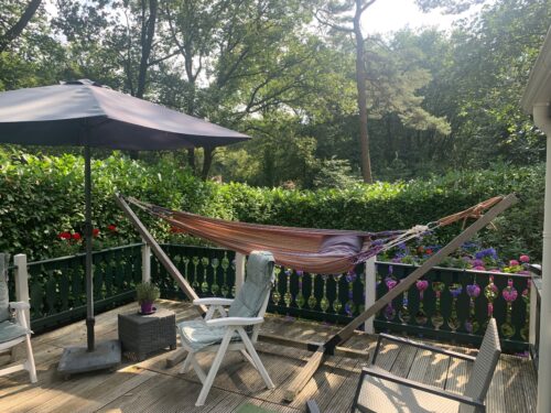 Wat je nodigt hebt voor een relaxte dag, weekend of week is hier. Een gezellig houtvuurtje, prima keuken, warme douche, een terras met eethoek, tuinstoelen en hangmat.